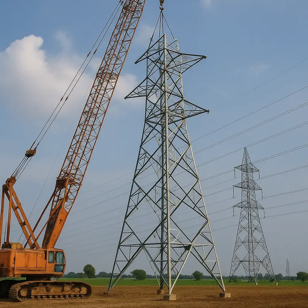 Assembly and erection of lattice towers, monopoles, and special towers using advanced equipment and trained manpower.